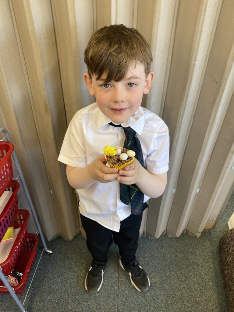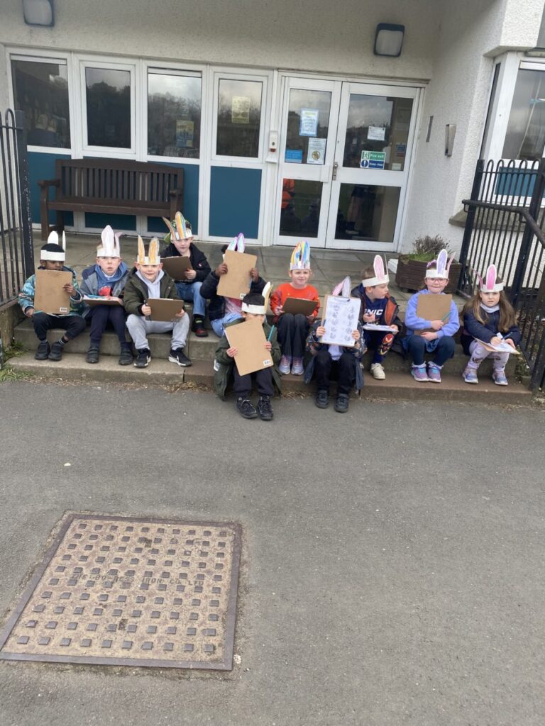 We made Easter Gifts for our Buddies and they gave us all a lovely Easter basket with eggs. Our Reading Buddies in P6 organised a special Easter Egg Hunt for us in the area. They had made beautiful crochet chicks for us.