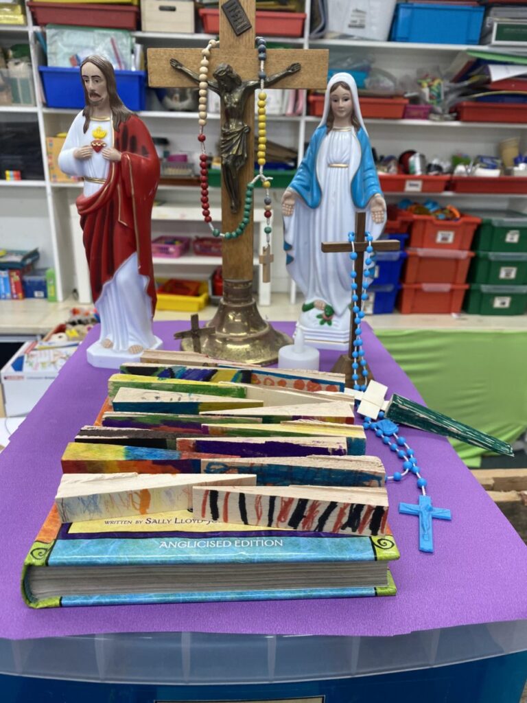 Today we took our door stops home with a wee message to let our families know about them. We had them on our class altar and now we will take them home to display at home.