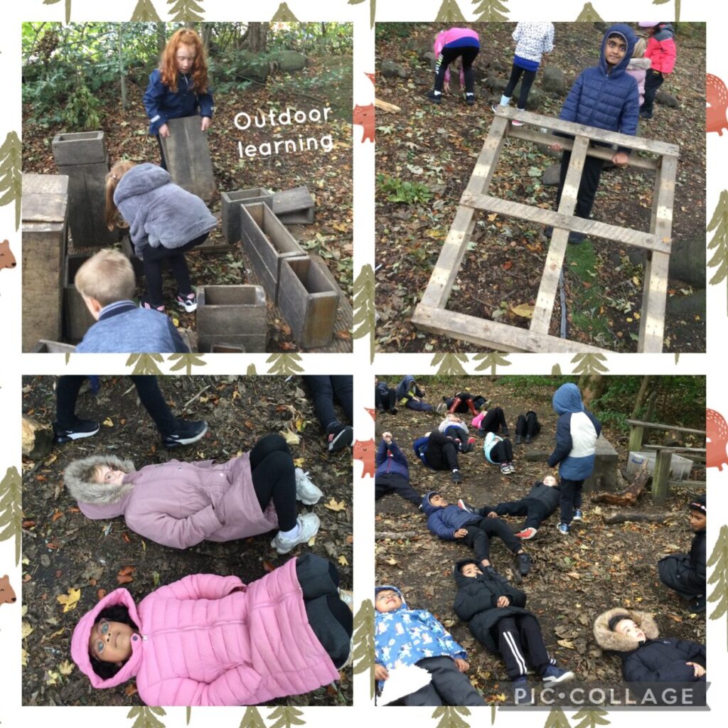 Vikashini enjoyed lying down on the carpet of leaves in the woodland and looking up, as a bug would, to see the lovely trees above. Next week we plan to make autumn pictures of trees from the perspective of a bug.