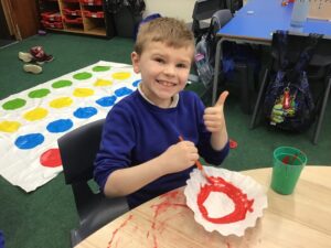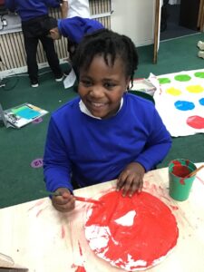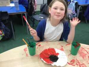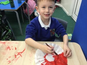 We made poppies to place on our class altar but decided to go big. It was good fun using the paint and some of the boys were delighted to learn how to paint the poppy in a logical manner rather than splashing the paint on,