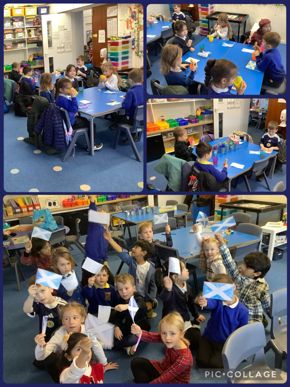 In RE, we have been learning all about St Andrew and we enjoyed making flags and having some shortbread and Irn Bru on Friday. We also drew around our hands and then coloured them in green to make our Advent Wreath. We also joined up with P1A, P2/3 and P3 for our first Advent Service. The P3 pupils did an amazing job reading and singing.