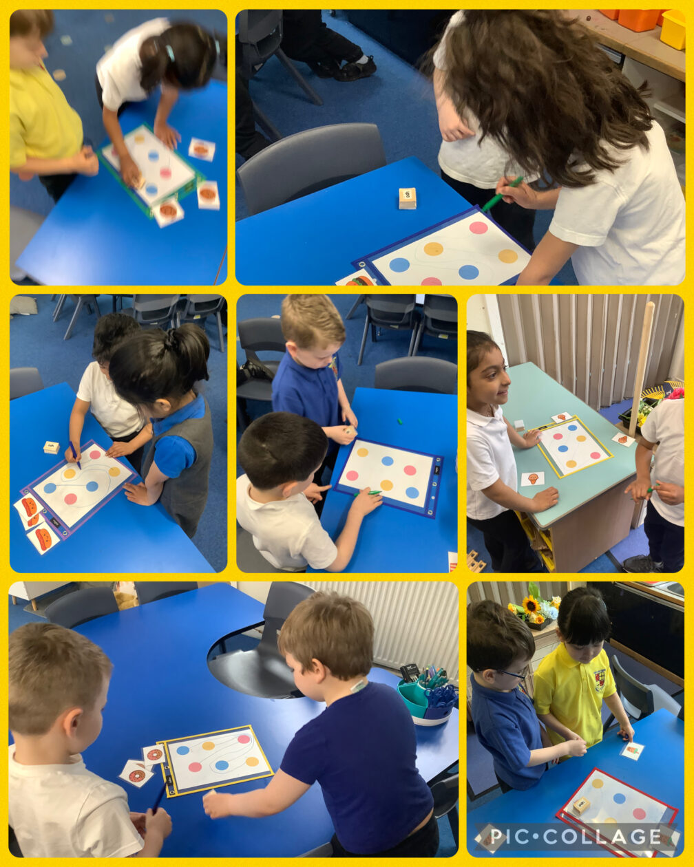 In Maths, we have been practising using a counting on or counting back strategy to complete addition and subtraction sums. We also did our first Building Thinking Classrooms task. We had to connect coloured dots without crossing the lines. We got random partners and we were very good at writing our partners ideas when we had the pen.